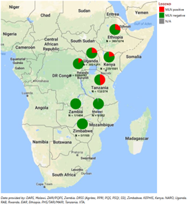 Fig3: MLN frequency in Eastern and Southern Africa through smart surveillance.